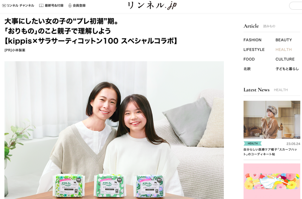 パッケージ裏面に記載されたリンネル.jpの「母娘で学べるおりもののこと」では、親子であってもなかなか切り出しにくい性の話を、モデルのAYUMIさんと中学一年生の娘さんの親子が、産婦人科医の宋美玄先生との対話を通して「おりもの」の知識を深めていく様子を掲載しました。